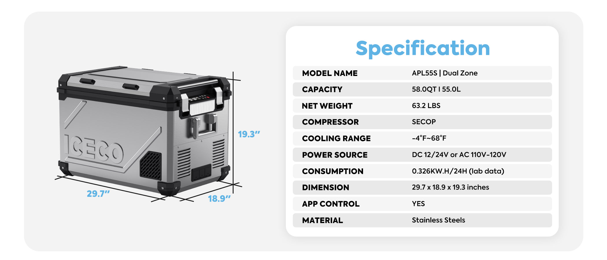 Independent dual-zone compartments with temperature range from -4℉ to 68℉.