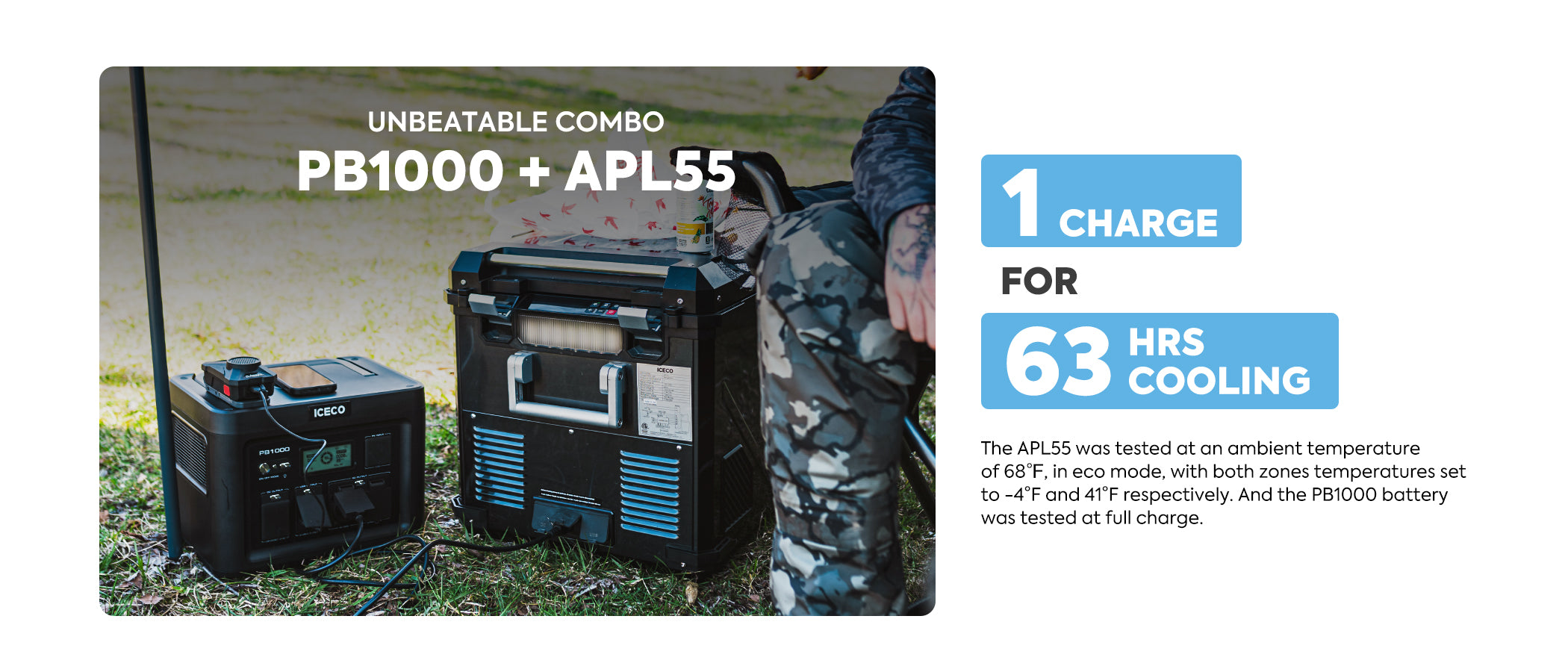 ICECO APL55S 12V Dual Zone Fridge Freezer – 58QT with PB1000 Power Station