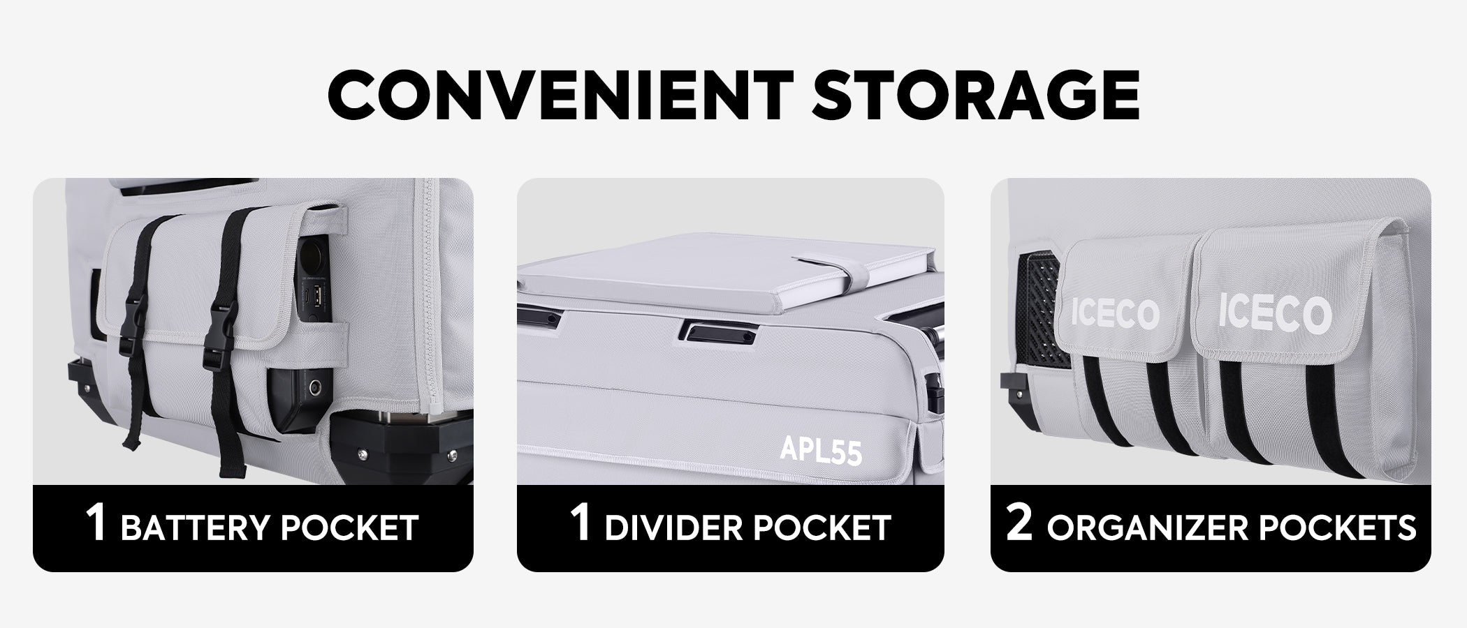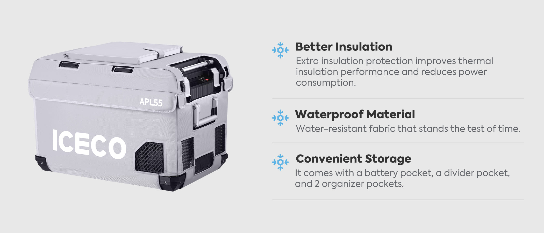 Designed specifically for the ICECO APL55 model. Hook-style lid design allows you to open the fridge easily without removing the cover.