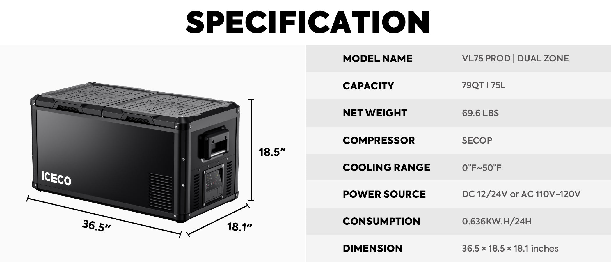 VL75ProD features two independent compartments, allowing use as both fridge and freezer simultaneously.